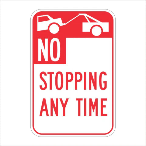 R26l (CA) No Stopping Any Time Tow-Away (SYMBOL) Sign